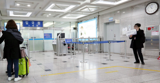 중국 정부가 한국으로의 단체관광을 전면 금지한 15일 오전 인천시 중구 인천항 제1국제여객터미널 입국장이 한산한 모습을 보인다. 여행업계에 따르면 평소 이곳에는 중국 단체 관광객을 맞는 여행가이드들이 20여명이 늘 자리했지만 '사드 갈등'이 불거지면서 점차 감소, 이날에는 8~9명만이 자리를 지켰다. 이들은 "이번 가이드 일이 마지막이다. 실직할 위기에 처했다"고 하소연했다.