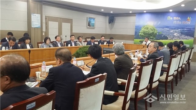 최근 경기 동두천시가 ‘2017년 숲 해설 교실 운영’관련 숲해설가 및 공원녹지과장 등과 함께 ‘숲 해설가 간담회’를 열고 숲해설가 우수사례 발표 등의 정보를 교류했다. 사진은 간담회를 진행하는 모습.(사진제공=동두천시청)