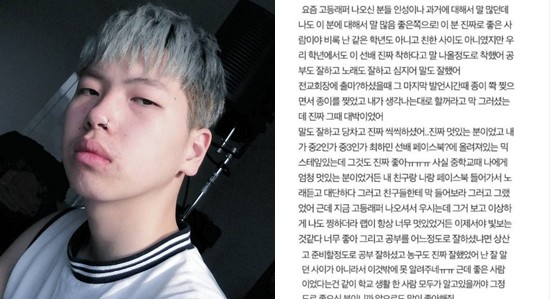 더불어 작성자는 “후배들 사이에서도 (최하민이) ‘진짜 착하다’라는 말이 나왔었다”라며 “공부도, 노래도, 말도 모두 잘했다”라고 덧붙였다.