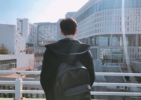 공개된 사진 속 그는 대학교 캠퍼스에서 누군가를 기다리고 있는 모습이다.