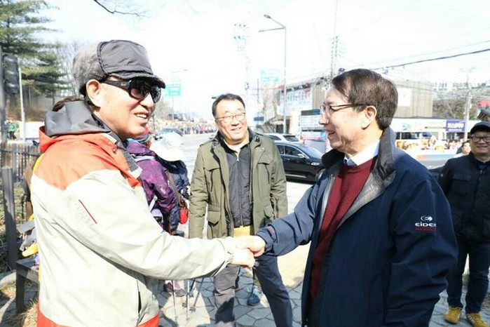 19일 오전 10시, 정운찬 이사장은 YS계의 대표 인사인 김덕룡 김영삼민주센터 이사장을 비롯해, 이상천 민주산악회 회장, 이규홍 민족화해협력범국민협의회 조직위원장 등 각계인사 100여명과 산행을 함께 했다.