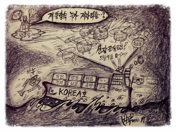 [독자만평] 저 풍랑속 누가 저자리를…?