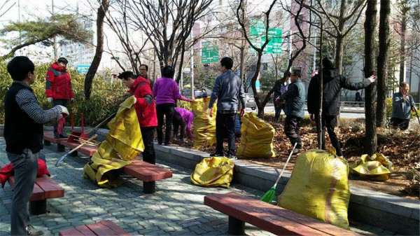 최근 서울 양천구시설관리공단 양천구민체육센터는 다가오는 봄을 맞이해 시설물 안전점검 및 환경정비를 대대적으로 실시했다. 사진은 직원들이 화단에서 낙엽, 담배꽁초, 쓰레기 등을 수거하는 모습.(사진제공=양천구시설관리공단)