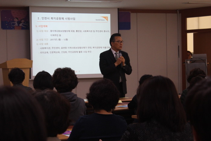 인천 연수구는 지난 20일 옥련2동 주민센터에서 옥련1·2동 통장 및 자생단체 회원과 지역주민을 대상으로 '2017년 옥련동 거점형 이동복지관 사업설명회'를 개최했다. 사진은 이재호 구청장이 인사말을 하는 모습.(사진제공=연수구청)