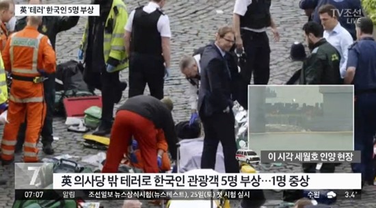 영국 의사당 인근에서 발생한 테러로 한국인 관광객 5명이 부상을 입었다.