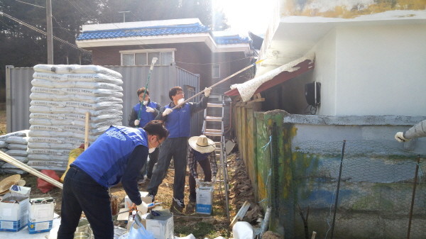 경기 용인시 무한돌봄센터는 지난 22일 삼성전자DS부문 임직원 등 30명이 참석한 가운데 처인구 양지면에 거주하고 있는 장애인 주택에 대해 올해 첫 사랑의 집수리 활동을 실시했다. 사진은 집수리가 진행중인 모습.(사진제공=용인시청)