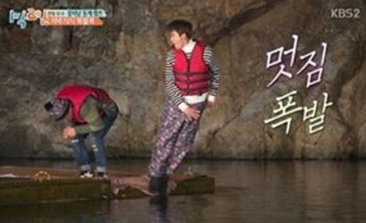 공개된 사진 속 그는 최근 자신의 출연했던 KBS2 예능프로그램 '1박 2일' 속 입수를 하기 전 우스꽝스러운 포즈를 취하고 있어 보는 이들을 폭소케했다.
