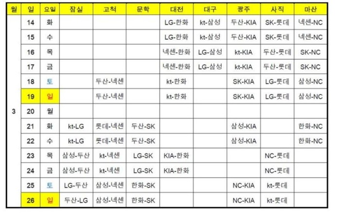 이런 상황가운데 시범 경기 일정이 공개 됐다.