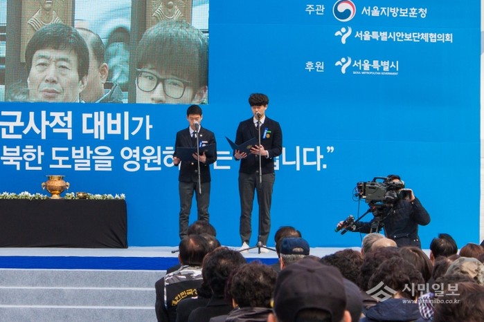 [시민일보=이대우 기자] 지난 24일 서울지방보훈청이 서울 광화문 중앙 광장서 전사자 유가족, 주요 인사, 각계 대표, 시민, 학생, 군 장병 등이 참여한 ‘제2회 서해수호의 날 기념식’을 개최했다. 사진은 천안함 전사자들에게 바치는 편지를 낭독하고있는 고등학생들의 모습.