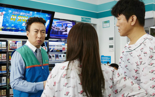 27일 공개된 ‘아빠는 딸’ 스틸 컷에서 박명수는 편의점 유니폼을 입고 정소민, 윤제문을 바라보고 있는 모습이다.