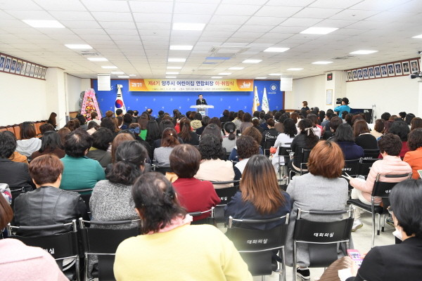 경기 양주시는 지난 27일 시청 지하대회의실에서 '제4기 양주시 어린이집연합회장 이·취임식 및 원장 직무교육'을 실시했다. 사진은 행사에 참석한 이성호 시장이 인사말을 하는 모습.(사진제공=양주시청)