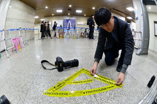 | ▲ 뇌물수수 등 혐의로 구속영장이 청구된 박근혜 전 대통령에 대한 구속 전 피의자 심문(영장실질심사)을 하루 앞둔 29일 오전 서울 서초구 서울중앙지법에서 취재진이 포토라인을 설치하고 있다.(사진제공=연합뉴스) | ||