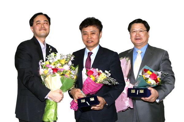 | ▲ 김성은 길벗장애인자립생활센터 소장(왼쪽부터), 김기래 의장, 변창윤 부의장이 기념촬영을 하고 있다. (사진제공=중구의회) | ||