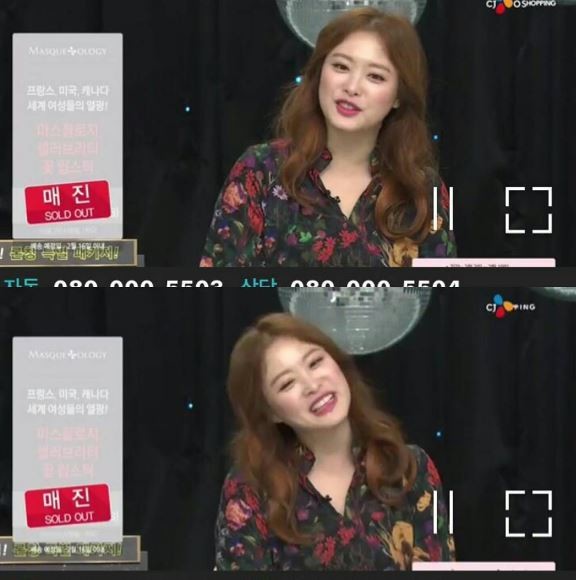 게재된 사진 속에는 심진화가 한 홈쇼핑 방송에서 쇼호스트로 출연하고 있으며 판매 중인 립스틱이 매진됐다는 글귀가 눈길을 끌었다.