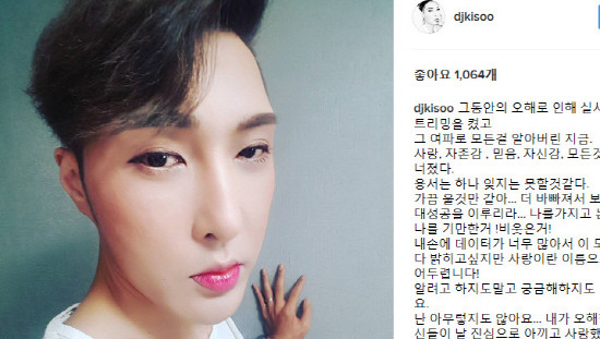 하지만 김기수는 ‘사랑이란 이름으로 덮어두렵니다’라며 ‘나를 머릿속에 지우고 나도 당신들을 머릿속에서 지우고 살렵니다’라고도 글귀를 남기며 긍정적인 모습을 나타냈다.