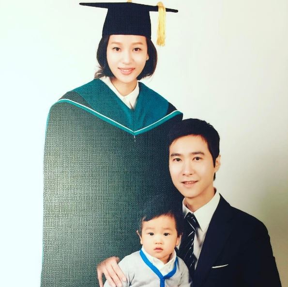 사진 속 허양임은 학사모와 가운을 입고 서있으며 고지용은 승재를 무릎에 앉히고 환한 미소를 짓고 있어 이목을 집중시켰다.