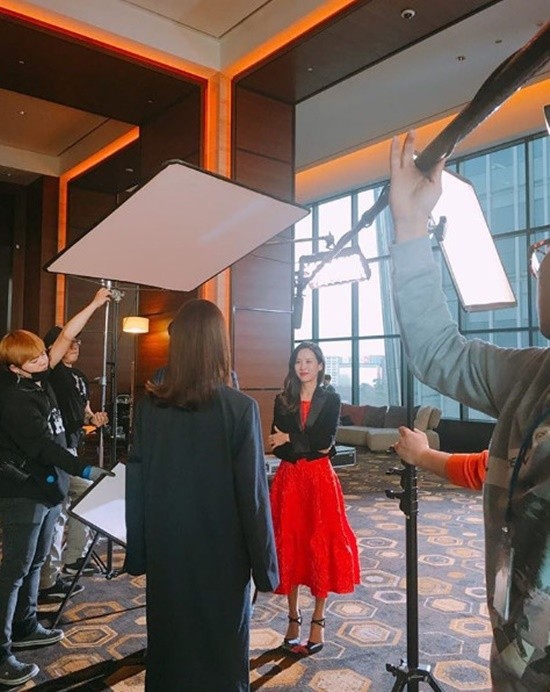 배우 조여정이 최근 자신의 인스타그램에 KBS2 월화드라마 ‘완벽한 아내’ 촬영 중 빨간드레스를 입은 모습을 공개했다.
