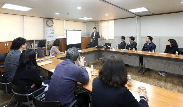 서울 광진구가 지난 4일 오후 5시30분 광장동 주민센터에서 ‘찾아가는 청렴 간담회’를 열었다. 사진은 광장동 주민센터 전직원, 감사담당관 조사순찰팀, 총무과 인사팀 직원들이 이야기를 나누는 모습.(사진제공=광진구청)