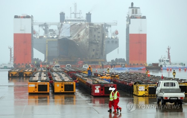 앞서 인양업체인 상하이샐비지는 선체 무게가 기존 추정치보다 1130톤 더 무거운 1만4592톤이라고 밝힌 바 있다.
