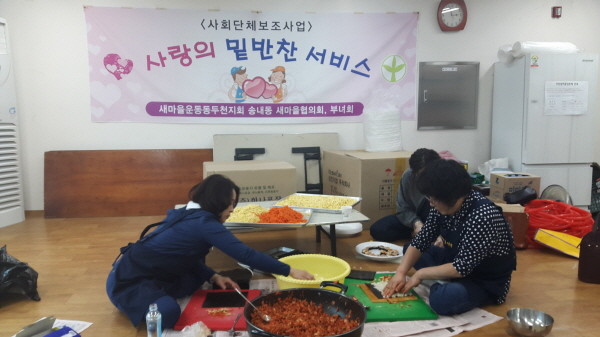 경기 동두천시 송내동 새마을부녀회에서는 지난 4일 지역내 저소득층 홀몸노인 및 장애인 등 16가구를 대상으로 사랑의 밑반찬을 전달했다. 사진은 부녀회 관계자들이 음식을 만들고 있는 모습.(사진제공=동두천시청)