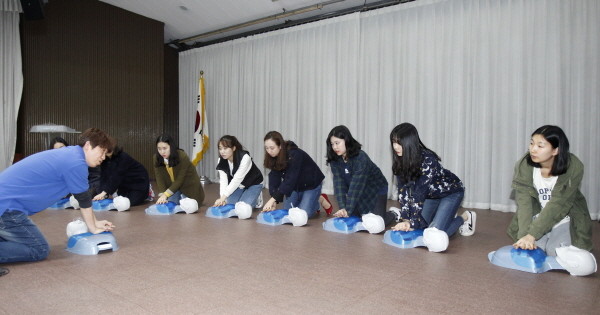서울 광진구가 지난 6일 오후 5~7시 구청 대강당에서 지역 내 국공립 어린이집 보육교사 120명을 대상으로‘심폐소생술 교육’을 실시했다. 사진은 참여자들이 심폐소생술 실습을 하는 모습.(사진제공=광진구청)