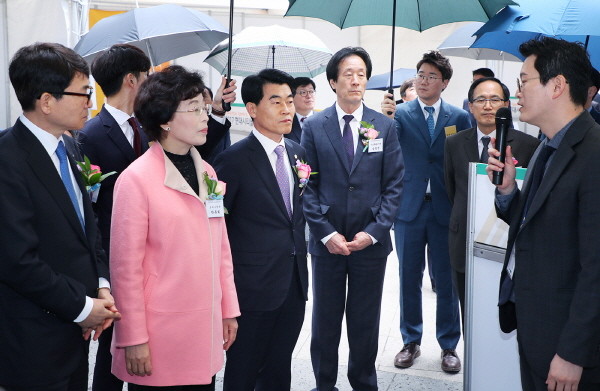 최근 서울 송파구의회 안성화 의장이 가든파이브 1층 중앙광장에서 열린 ‘송파구민과 함께하는 2017 현대시티몰 가든파이브점 채용박람회’에 참석해 채용 부스를 둘러보며 인사 및 채용 담당자들을 만나 격려했다. 사진은 안 의장(왼쪽 세번째)과 박춘희 구청장(왼쪽 두번째)가 관계자로부터 설명을 듣고 있는 모습.(사진제공=송파구의회)
