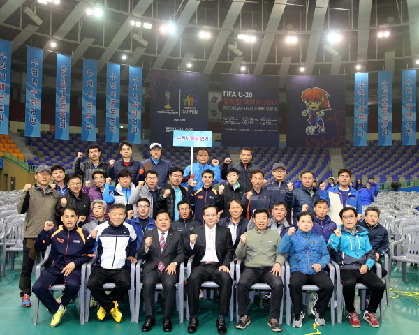 [수원=임종인 기자] 경기 수원시의회 김진관 의장과 염상훈 부의장을 비롯한 시의원들이 지난 8일 수원체육관을 찾아 수원시 생활체육 동호인들의 축제를 함께했다.