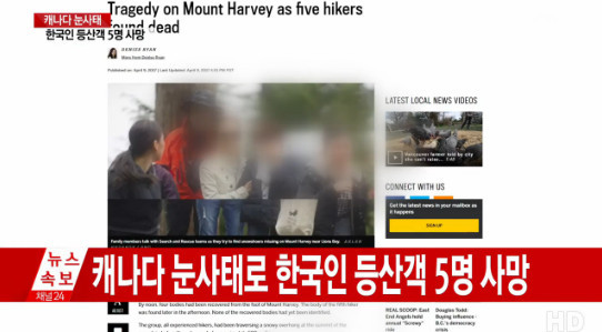 외교부는 지난 10일 캐나바 밴쿠버에서 실종된 한국인들의 인적 사항을 파악 중에 있다고 전했다. 한 매체에 따르면 지난 8일(현지시간) 캐나다 서부 브리티시콜럼비아주 하비산에서는 눈사태로 인해 5명이 실종된 것으로 밝혀졌다.