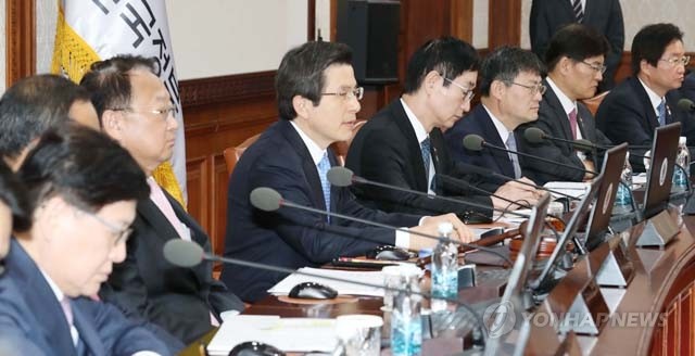 황교안 대통령 권한대행 국무총리가 11일 정부 서울청사에서 열린 국무회의를 주재하고 있다. 이날 국무회의에서는 ‘근로자퇴직급여 보장법 시행령 개정안’ 등을 심의·의결했다.
