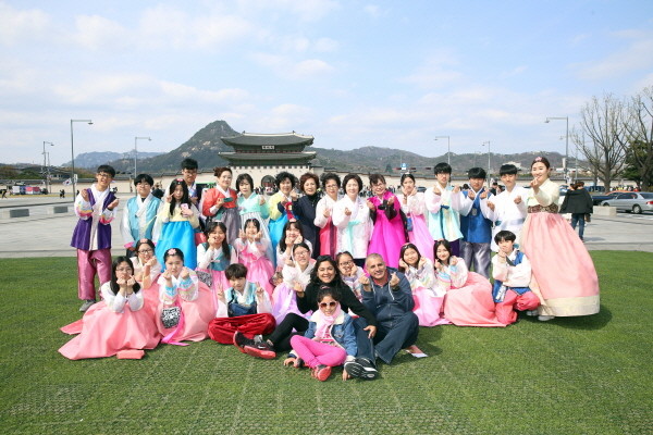 최근 서울 종로구의회 운영위원장 경점순 의원이 한복의 멋을 널리 알리기 위해 ‘한복 사랑 캠페인’을 기획, 청소년들과 함께 인사동과 경복궁 일대를 걸으며 한복의 우수성과 아름다움에 대해 홍보를 실시했다. 사진은 한복을 입은 경점순 의원과 청소년들이 광화문 광장에서 외국인들과 함께 기념촬영을 하고있는 모습.