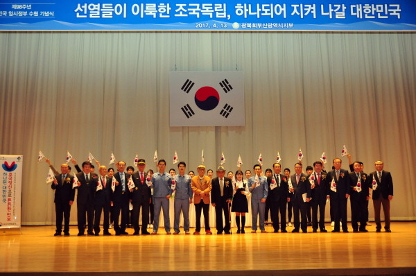 기념식에는 김병길, 이주호 애국지사, 부산보훈청장, 부산시정무특별보좌관, 보훈단체장, 광복회 회원, 소해 장건상 선생 유족, 이사벨고등학교 학생, 시민 등 400여 명이 참석한 가운데 ▲ 국민의례 ▲기념사 및 축사 ▲(사)문화마루 공연팀의 기념공연 ▲만세삼창 순으로 진행됐다.