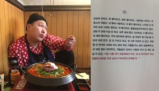 이는 ‘모성애 강하고, 책 좋아하고, 영화 좋아하고’를 시작해 10줄 이상의 조건들이 나열돼 있으며 그 중 ‘가끔 나를 애기 취급해줘야 하고, 배 또 만져줘야 하고, 젖병에 따뜻한 우유 넣어서 먹여주면 완벽할 듯’이라는 문구가 화제가 되고 있다.