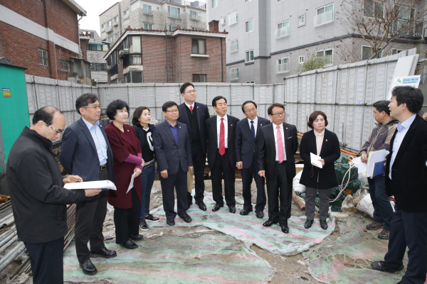 | ▲ 대조동 노인복지관 공사현장을 방문한 행정복지위원들 | ||