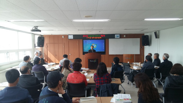 경기 양주시농업기술센터는 농업의 블루오션으로 떠오르고 있는 곤충자원을 활용해 일자리 및 신소득 창출에 기여하고자 14일 농업기술센터에서 제4기 곤충창업사관학교 개강식을 개최했다. 사진은 센터 관계자가 인사말을 하는 모습.(사진제공=양주시청)