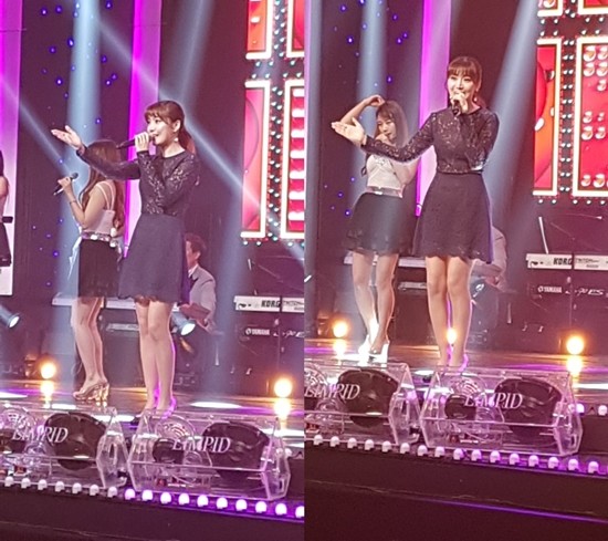 이날 최예진은 블랙 색상의 시스루 원피스를 입고 등장, 타이틀곡 ‘사랑의 DNA’를 열창했다.
