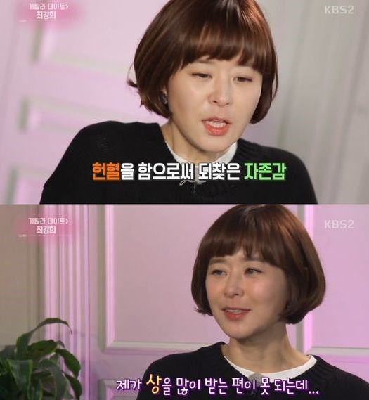 이날 최강희는 헌혈의 퀸이라는 수식어에 대해 "한창 자존감이 떨어졌을 때 헌혈을 시작했다"라고 말문을 열엇다.