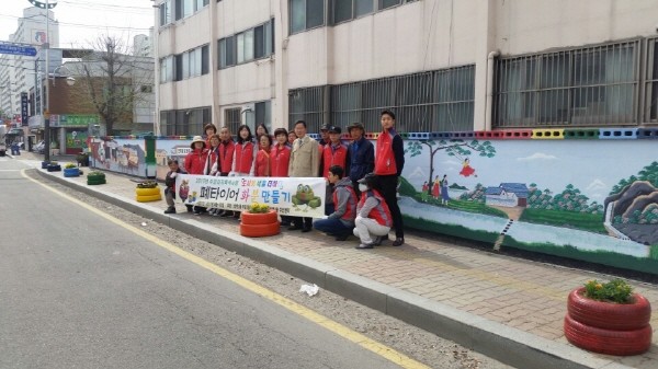 경기 동두천시 생연2동 주민자치위원회는 지난 14일 주민자치위원, 새마을부녀회 등 20여명이 참여한 가운데 보민주택 앞 인도변에서 예쁘게 색칠한 타이어 화분에 봄꽃을 식재했다. 사진은 참여자들이 기념촬영을 하는 모습.(사진제공=동두천시청)