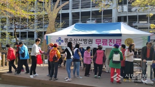 [부산=최성일 기자] 최근 부산 사상구 주례동 소재 의료법인 은성의료재단 좋은삼선병원은 부산어린이대공원 입구 공연장에서 봄철 나들이객들을 대상으로 현장의료서비스를 무료로 실시했다. 사진은 현장의료서비스가 진행되고 있는 모습.(사진제공=최성일 기자)