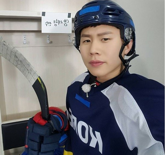 공개된 사진 속 그는 아이스하키 유니폼을 입은채 비장한 표정을 하고 있어 평소 장난스런 모습과는 다른 진지함을 뽐냈다.