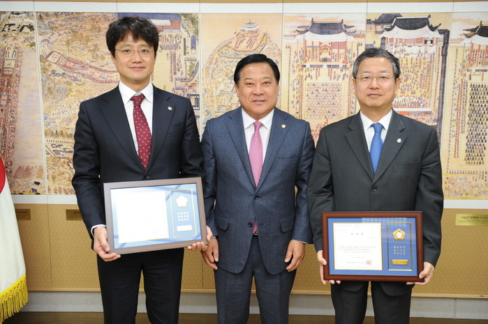 김진관 의장은 최근 의장 집무실에서 열린 재위촉식에서 강태순 변호사와 이승빈 변호사에게 각각 위촉패를 전달했다.