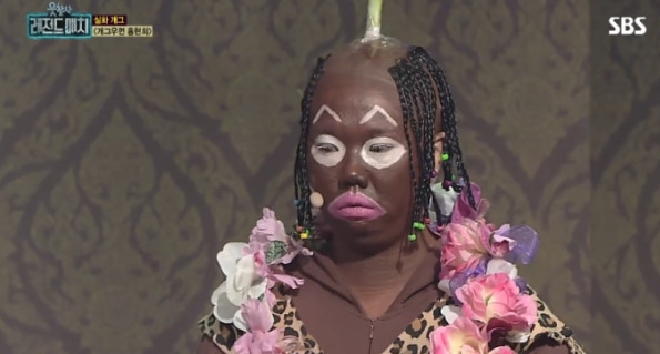 홍현희는 19일 SBS 예능프로그램 ‘웃찾사 - 레전드 매치(이하 웃찾사)’에서 얼굴을 검게 칠한 뒤 파를 머리에 얹고 등장했다. 하지만 방송 이후 이를 본 온라인 커뮤니티와 소셜미디어에서는 홍현희가 인종을 희화화했다는 주장이 나왔다.