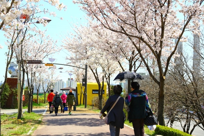 | ▲ 목동역 인근에 핀 벚꽃길을 걷고있는 주민들 | ||