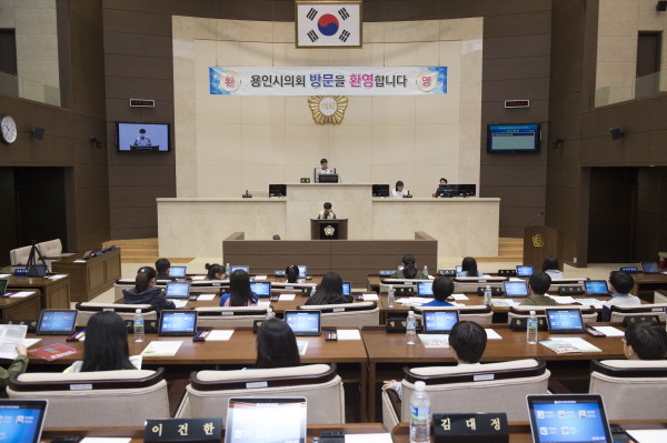 특히, 모의의회 체험에서는 2회에 걸쳐 본회의를 개최해 되도록 많은 학생이 참여하도록 했다. 제1차 본회의는 ‘경전철 이용 활성화 방안’을 안건으로 5분 자유발언, 질의·답변, 찬성·반대 토론 등을 했으며, 전자투표를 통해 찬성 18, 반대 8, 기권 1로 가결됐다. 이어 진행된 제2차 본회의에서는 ‘용인시 자전거 생활화 조례안’을 안건으로 찬성 18, 반대 6, 기권 3으로 가결됐다.