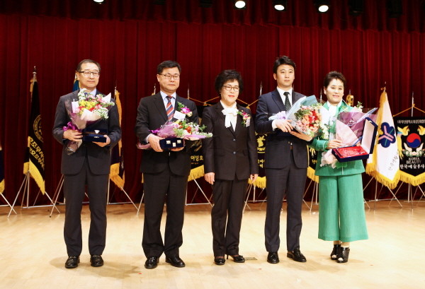 | ▲ 비에그룹 대선주조(주) 차재영 이사(맨 왼쪽)가 감사패를 받고 다른 수상자들과 기념촬영을 하고 있다. | ||