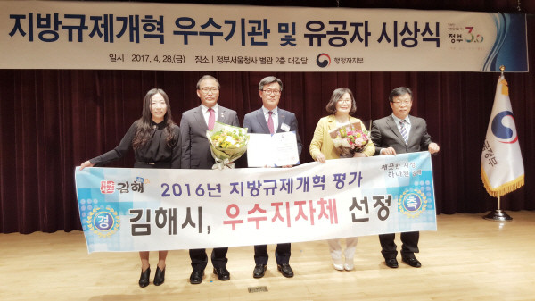 허성곤 시장은 “이번 정부 규제개혁평가 우수 지자체 수상에 만족하지 않고, 앞으로도 기업 활동과 투자유치, 시민의 편의 증진을 위한 규제해소를 위해 최선을 다해 나가겠다” 라고 전했다.