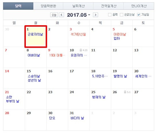 한편 근로자의 날은 산업사회에서 근로의 중요성을 인식해 근로자의 노고를 위로하고 근무 의욕을 높이며, 노사협조 분위기를 진작시켜 노사 일체감을 조성하고자 제정된 노동자 기념일이나 법정 공휴일이 아니고 자율적으로 휴무를 결정할 수 있는 관계로 근로자의 날은 정작 근로 착취의 날이 돼버렸다.