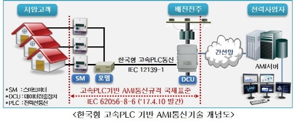 이번에 최종 승인된 한전의 AMI기술은 스마트미터(전력량계) 국제표준기반의 통신기술로써, 2009년 세계최초로 광대역 PLC기술의 국제표준을 획득한 한국형 고속 PLC와 스마트미터간의 연계를 위한 접속 프로토콜 및 정보모델을 정의하고 있다.