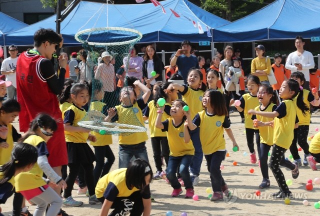 1일 오전 서울 광진구 용마초등학교에서 운동회가 열려 어린이들이 즐거운 시간을 보내고 있다.