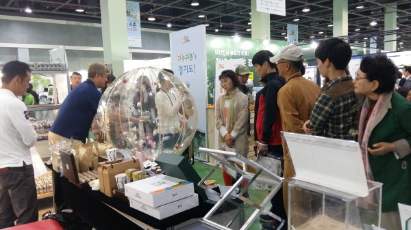 경기 양주시농업기술센터는 최근 양재 aT센터에서 열린 2017년 귀농ㆍ귀촌 청년창업 박람회에 곤충자원을 활용한 귀농ㆍ귀촌 성공사례를 홍보했다. 사진은 참여자들이 산업곤충 원료를 이용한 기능성 제품 등을 구경하는 모습.(사진제공=양주시청)