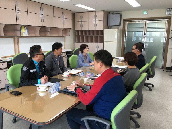 충남 아산교육지원청은 최근 '어린이 보호구역 교통안전을 위한 민·관·학 협의회'를 실시했다. 사진은 모범운전자회, 녹색어머니회, 경찰서, 시청, 교육지원청 관계자들이 회의하는 모습.(사진제공=아산교육지원청)